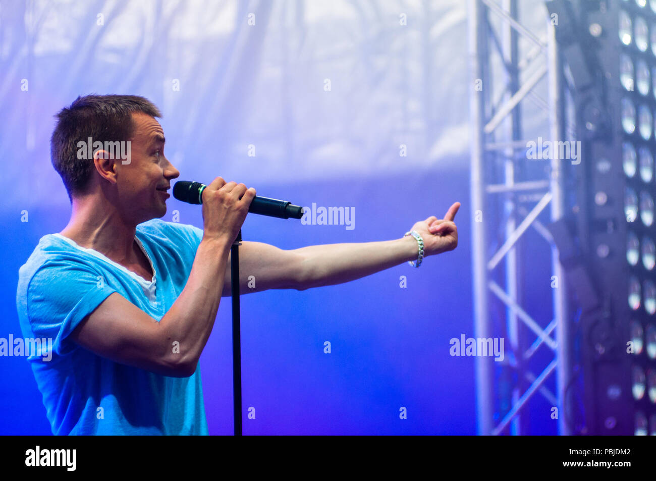 Moscow Russia Jule 06 2012 Vocalist Alexei Serov Performs At A Concert Of The Disco Accident Music Band Stock Photo Alamy